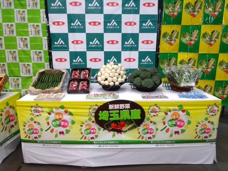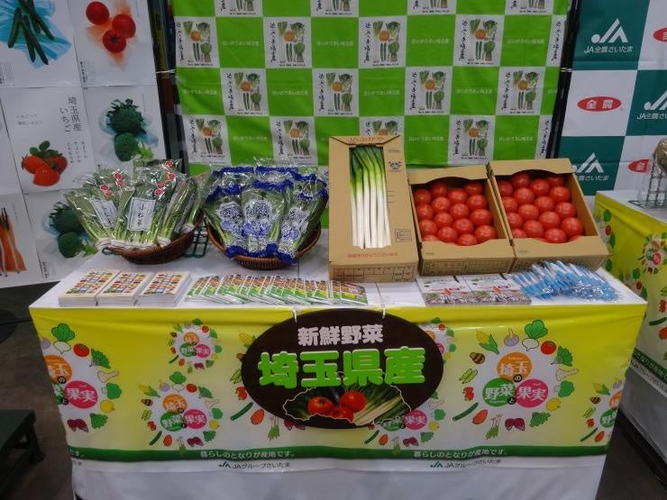 また、産出額が全国1位であるねぎ、2位のほうれんそう、「プレミアムいちご県」である本県が誇るオリジナルいちご品種「あまりん」などの埼玉県産野菜を展示し、PRを行いました。