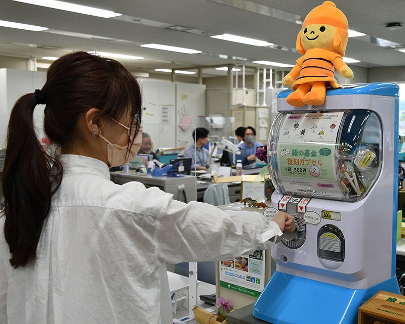 カプセルトイ型「緑の募金」が高槻市役所に登場