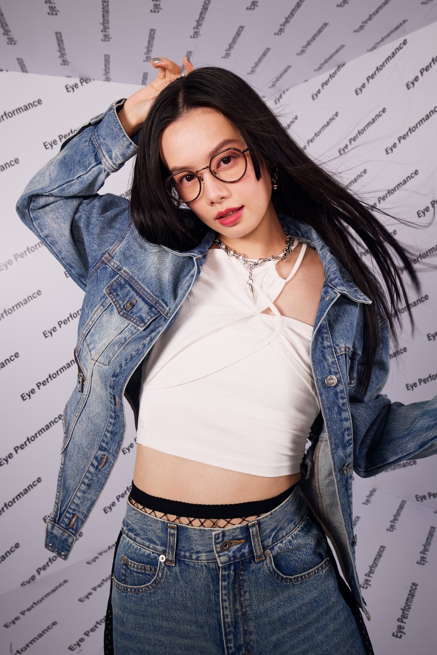 どんなフレームにも合わせやすいデニムはシルエットにエッジを効かせて今っぽく。存在感のある大きめサイズがコーディネートのポイントに。ダテメガネとしてもおすすめ。