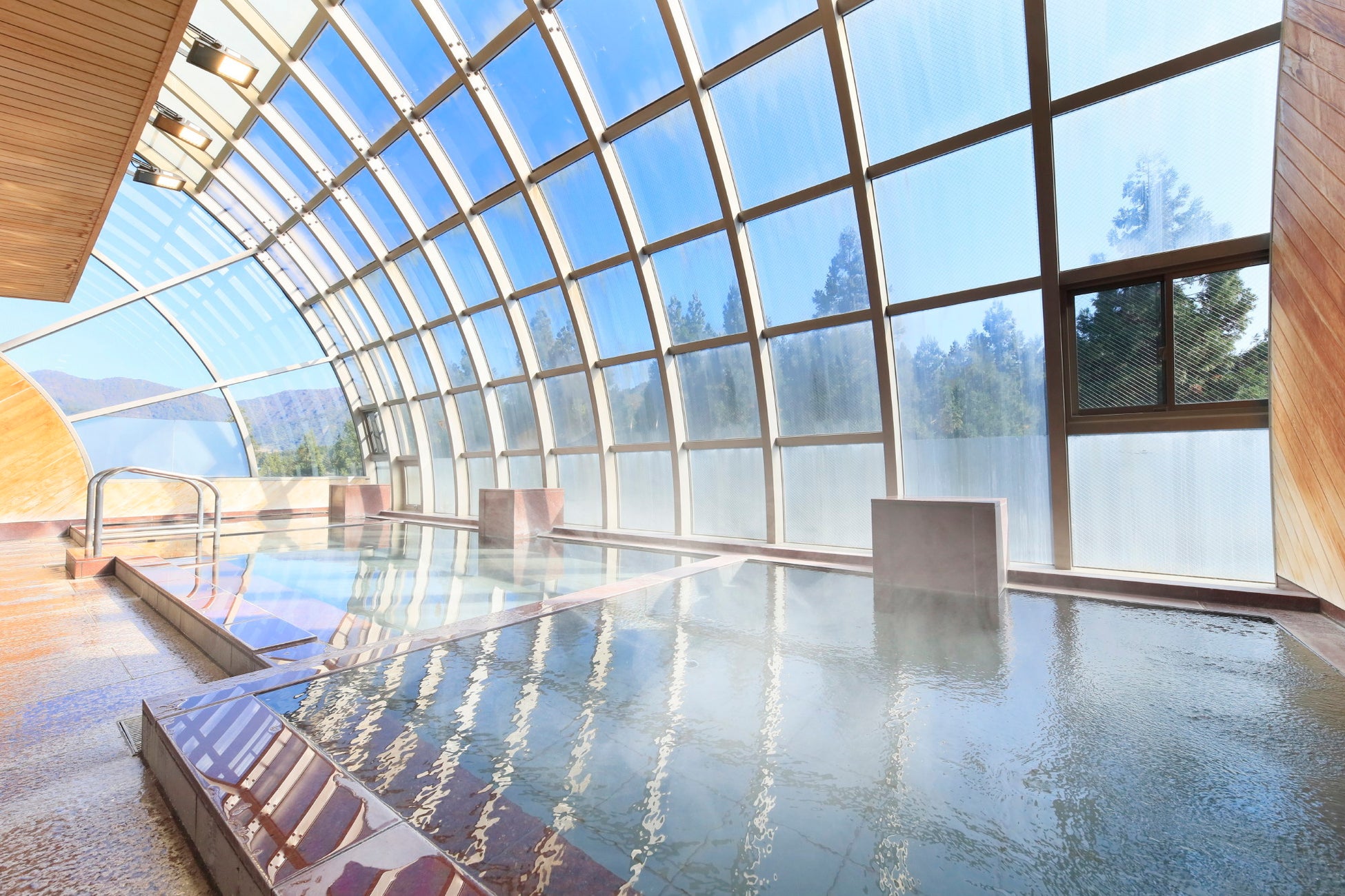 館内施設:大浴場、貸切温泉、ラウンジ、レストラン、プール(夏季限定)