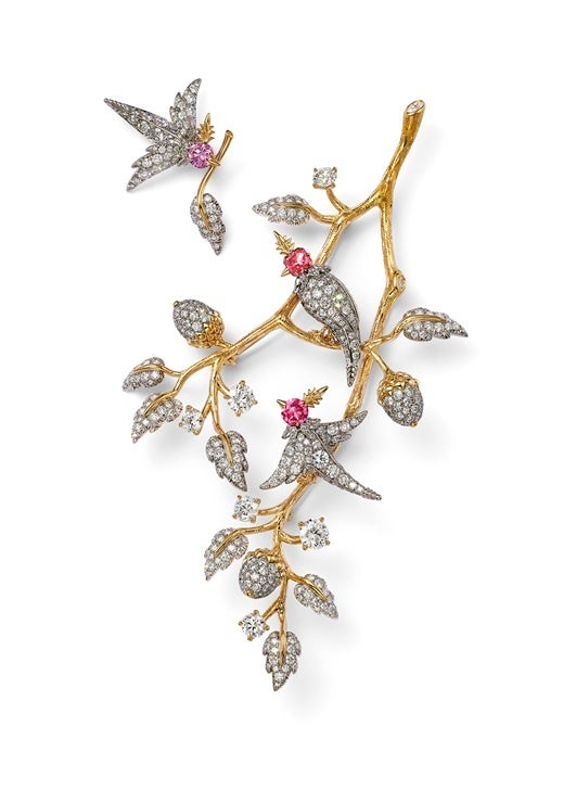 1965年に発表された「バード オン ア ロック」は、想像力溢れる芸術性とティファニーの卓越したクラフトマンシップを体現する存在として、ティファニーの象徴するデザインとなりました。60年の時を経て、ナタリー・ヴェルデイユとティファニーの デザイン スタジオは、このアイコンを新たな表現へと昇華させています。合計1.45カラットを超える希少なアーガイル ピンク™ ダイヤモンドがセットされたバードが、繊細な彫刻が施されたゴールドの枝にとまり、葉とドングリのモチーフには合計11カラットを超える529石のホワイト ダイヤモンドが煌めきを放ちます。これらの特別なピンク ダイヤモンドは、西オーストラリアの伝説的なアーガイル ダイヤモンド鉱山の最終期に採掘された非常に希少な「アーガイル ピンク™ ダイヤモンド:ザ・ティファニー コレクション」の一部です。同鉱山は2020年の閉鎖まで約40年間、世界で唯一この比類ない宝石を産出していました。今回の作品にこのピンク ダイヤモンドを採用したことは、ティファニーが、宝石の希少性と責任ある調達に揺るぎない姿勢の証です。レジェンダリー・バード:アーガイル・エディションは、ティファニーにおける創造性と革新的クラフトマンシップの対話を続けるティファニーの系譜を受け継ぐ傑作です。