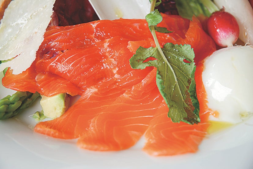 創業約90年の林’養魚場が、カナダのブリティッシュコロンビア州カムループス地方原産のニジマスの発眼卵を日本で初めて空輸し、ニジマスと交配を重ね、品種改良と養殖方法を追求した末に誕生したのが「阿武隈川メイプルサーモン」です。阿武隈川上流部の清涼な水を引き入れた養魚場で、一般的な養殖サーモンよりもはるかに長い約4年もの期間をかけて育成される純国産の大型トラウトで、タイやヒラメなどの白身魚のような食感とほのかな甘味が特徴です。