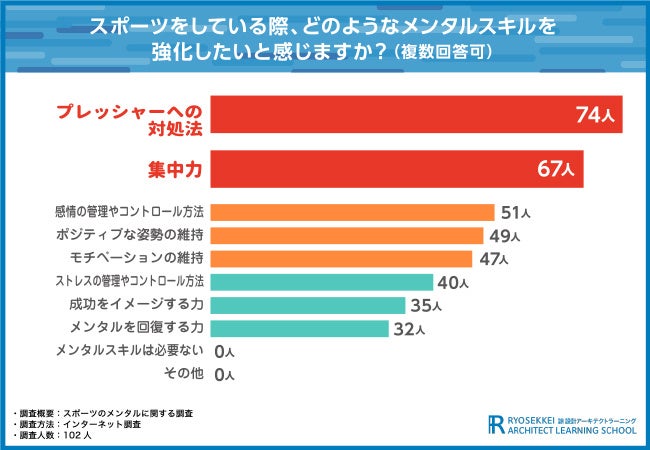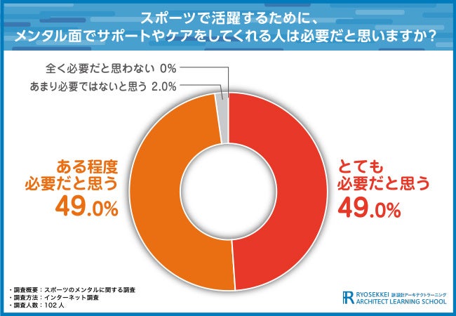 そこで今回、通信教育講座『諒設計アーキテクトラーニング』(https://www.designlearn.co.jp/)を運営する株式会社新生技術開発研究所は、スポーツ経験、またはスポーツ指導経験がある全国20〜60代の男女102名を対象に「スポーツのメンタル」に関する調査を実施しました。
