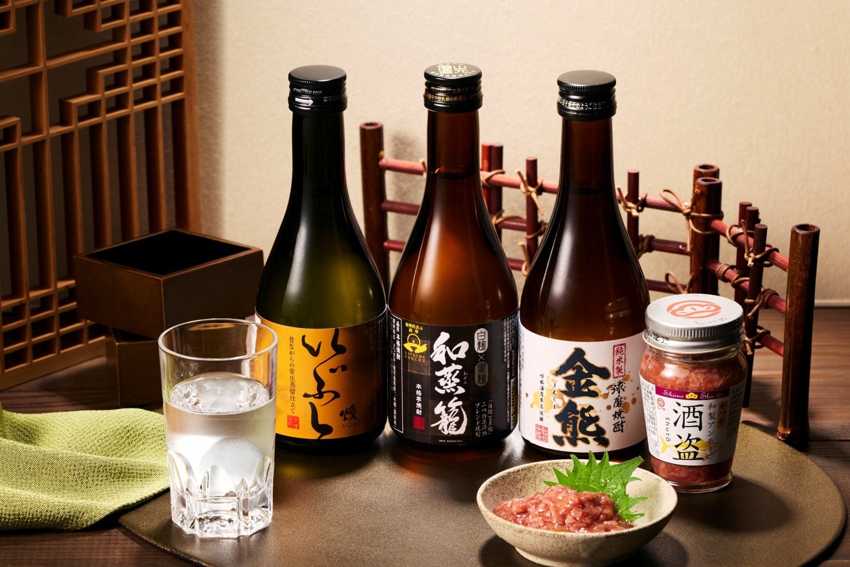 「本当に喜んでもらえるお酒のギフトってなんだろう?」美味しい焼酎はもちろん、酒器、さらには一緒に楽しめるつまみもあれば、至福な時間を過ごしていただけるのではないだろうか。そんなことを考えて生まれたセットです。