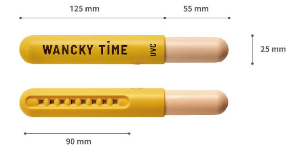 「WANCKY TiME」(ワンキータイム)は、紫外線の中で除菌力が高いUV-C LEDライトを8個搭載したポータブル除菌ライト。衛生面の気になる場面で約1秒かざすだけで99.9%除菌可能。