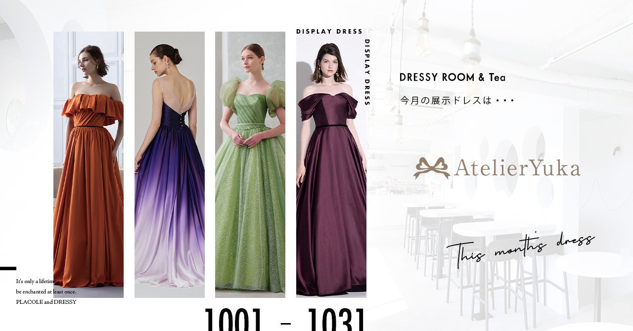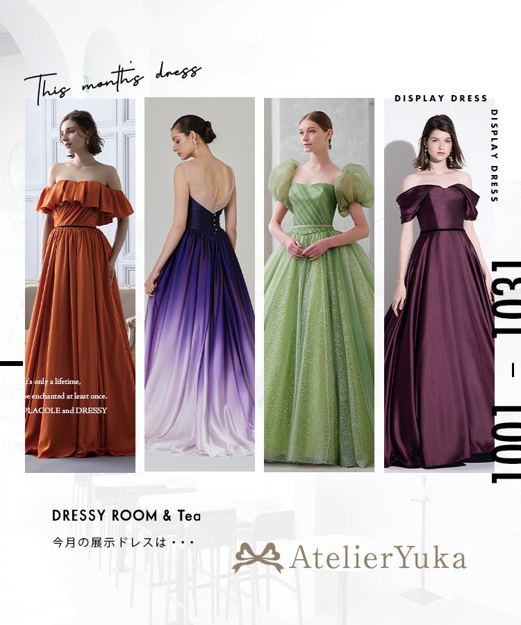 【DRESSY ROOM&Tea】10月のディスプレイドレスは「Atelier Yuka」のウェディングドレスを期間限定でお届けいたします。