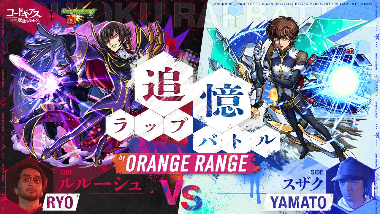 「コードギアス 反逆のルルーシュ」×モンスターストライクの初コラボを記念し、沖縄出身の5人組ロックバンドORANGE RANGEより、「RYO氏・YAMATO氏」を起用した動画コンテンツを本日より期間限定で公開します。