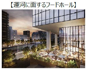 低層部の商業施設では、芝浦運河や船着場、浜松町駅との緑のアプローチとシームレスにつながり、水辺に面したバルコニーや緑に囲まれたテラス等自然を感じられる空間づくりを行います。飲食店を中心に約40店舗で構成されており、「TOKYO WORKation」の一端を担い、オフィスラウンジのような使い方から、忙しい利用者のランチや充実のディナータイム利用まで幅広いニーズに応えます。