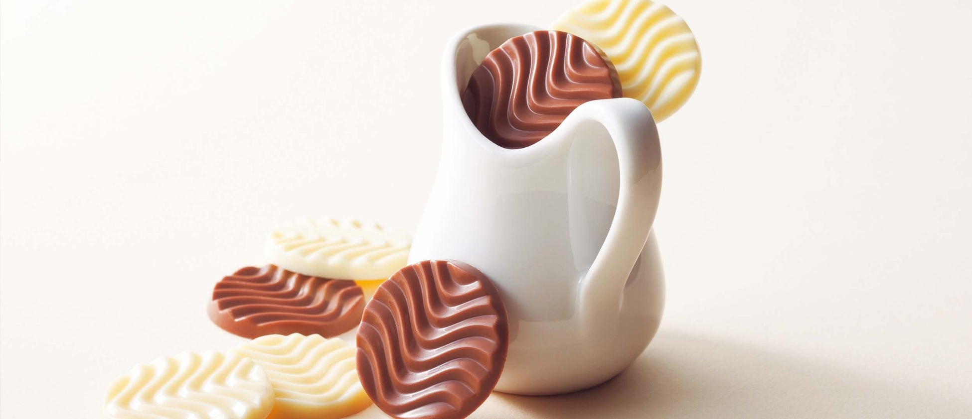 コクのあるまろやかな味わいと香りが軽やかな余韻を残す[クリーミーミルク](カカオ分37%)と、ミルクの味わいの後にすっきりとした甘さが広がる[ホワイト](カカオ分37%)のセットです。