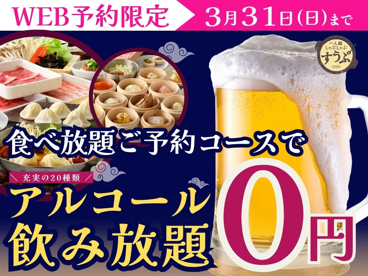 【謝恩会にも最適‼1杯から無料‼アルコール飲み放題‼】3/31迄のWEB予約限定企画!『すうぷ静岡パルコ店』にてセルフアルコール飲み放題が無料!飲茶やしゃぶしゃぶとともにお楽しみください!