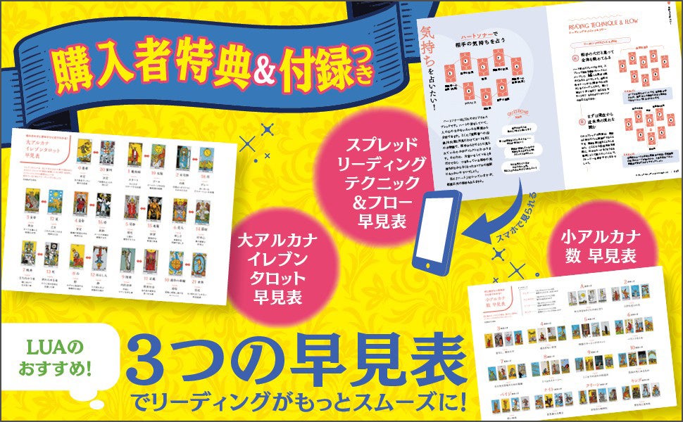 また、大アルカナイレブンタロットの早見表や、小アルカナ数の早見表が別丁のシートでついているため、とっても便利!
