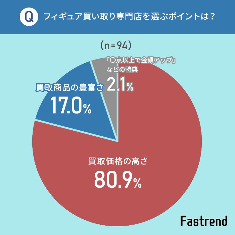 フィギュア買取サービスを利用したことがある男女94名に、フィギュア買取サービスを選ぶポイントについて聞きました。