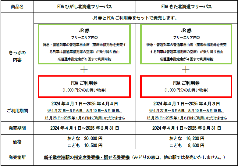 JR北海道・FDAタイアップ商品「FDAひがし北海道フリーパス」「FDAきた北海道フリーパス」を継続販売します!