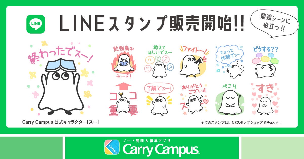 本キャンペーンの開催を記念して、Carry Campus 公式キャラクター「スー」の公式LINEスタンプを発売します。普段の勉強や生活のなかで使いやすい内容となっておりますので、ぜひご利用ください。