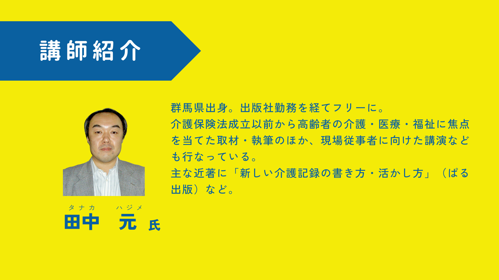 介護ジャーナリストの田中元(たなかはじめ)さんに解説いただきます!