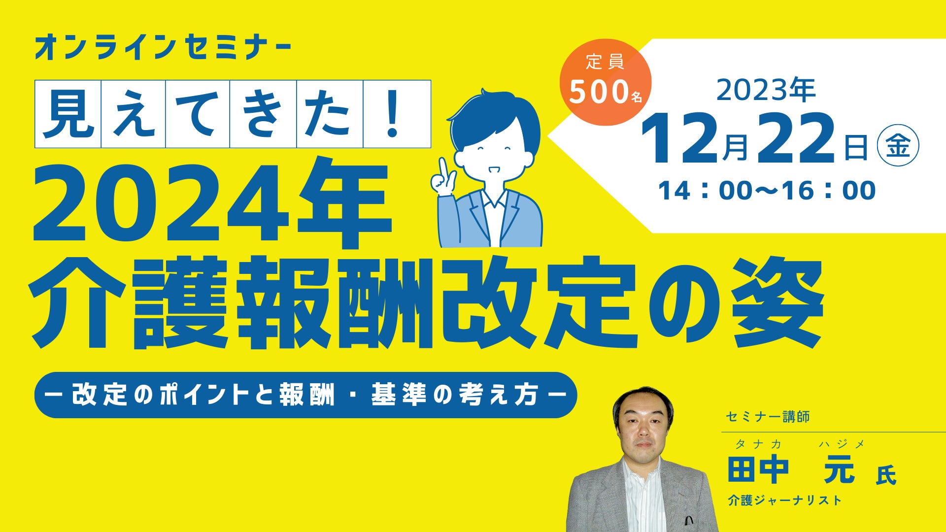 【介護事業者向けオンラインセミナー】12/22(金)「見えてきた!2024年介護報酬改定の姿ー改定のポイントと報酬・基準の考え方ー」開催!