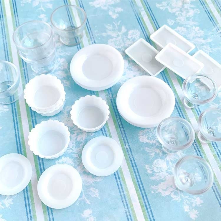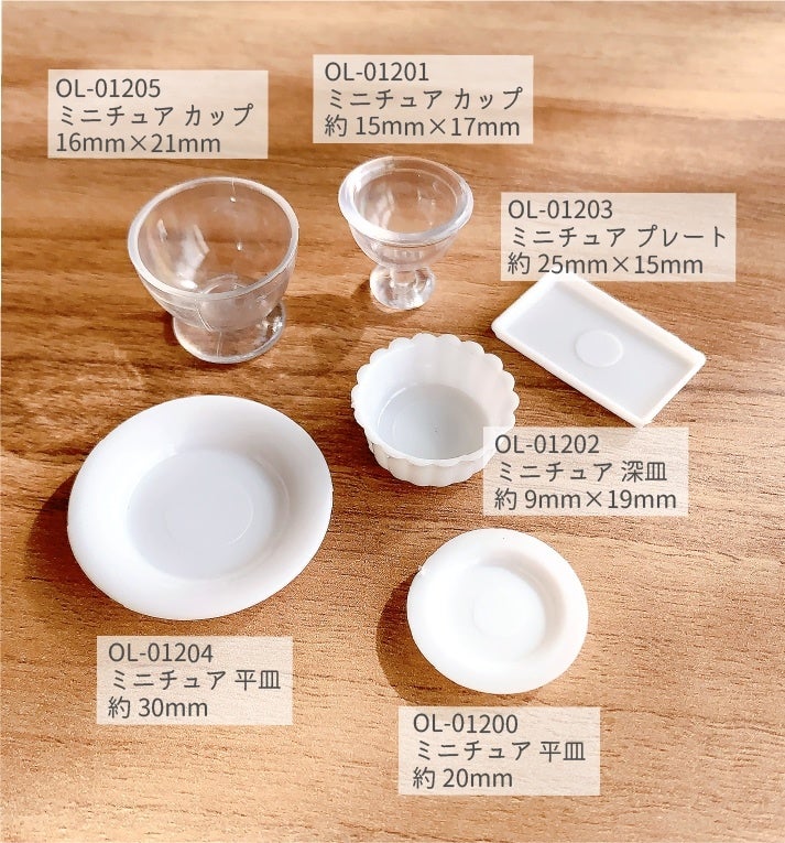 ミニチュアのディッシュプレートやスイーツ作りに大活躍のミニチュア食器とグラスがパーツクラブに初登場いたしました。みずみずしいカットフルーツを作れるレジン型も併せて販売。おいしいミニチュアスイーツが作ることができます。