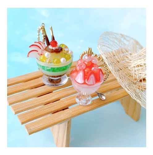 また、以前販売したパフェグラスより少し小さめサイズの、まるっとした形のかわいいパフェグラスが仲間入り。小ぶりなのでキーホルダーなどにして身に着けやすいです。