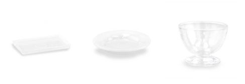 大小のお皿とあんみつが作れる深皿、長方形のトレーのバラエティ豊かなミニチュア食器4種が登場。