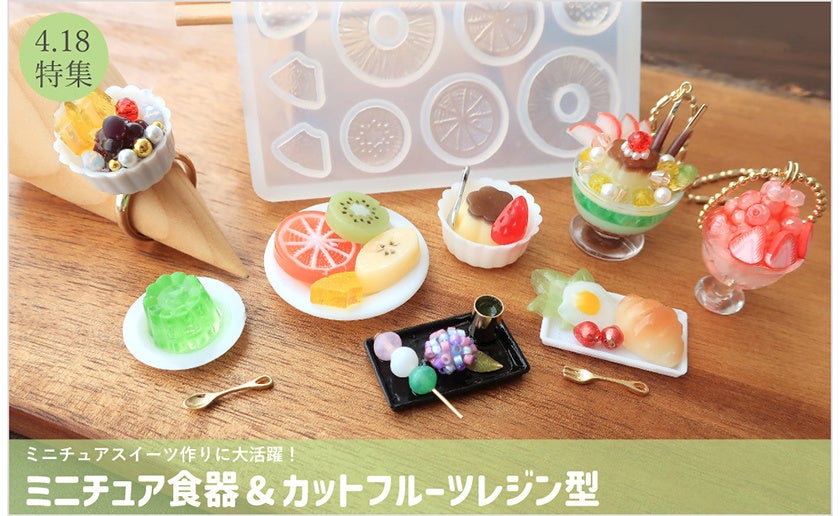 PARTS CLUB online <新商品掲載>4/18(木)オンラインショップでは、個性的でおいしそうなユニークなアクセサリーが作れるミニチュア食器とフルーツレジン型が新たに発売されました。
