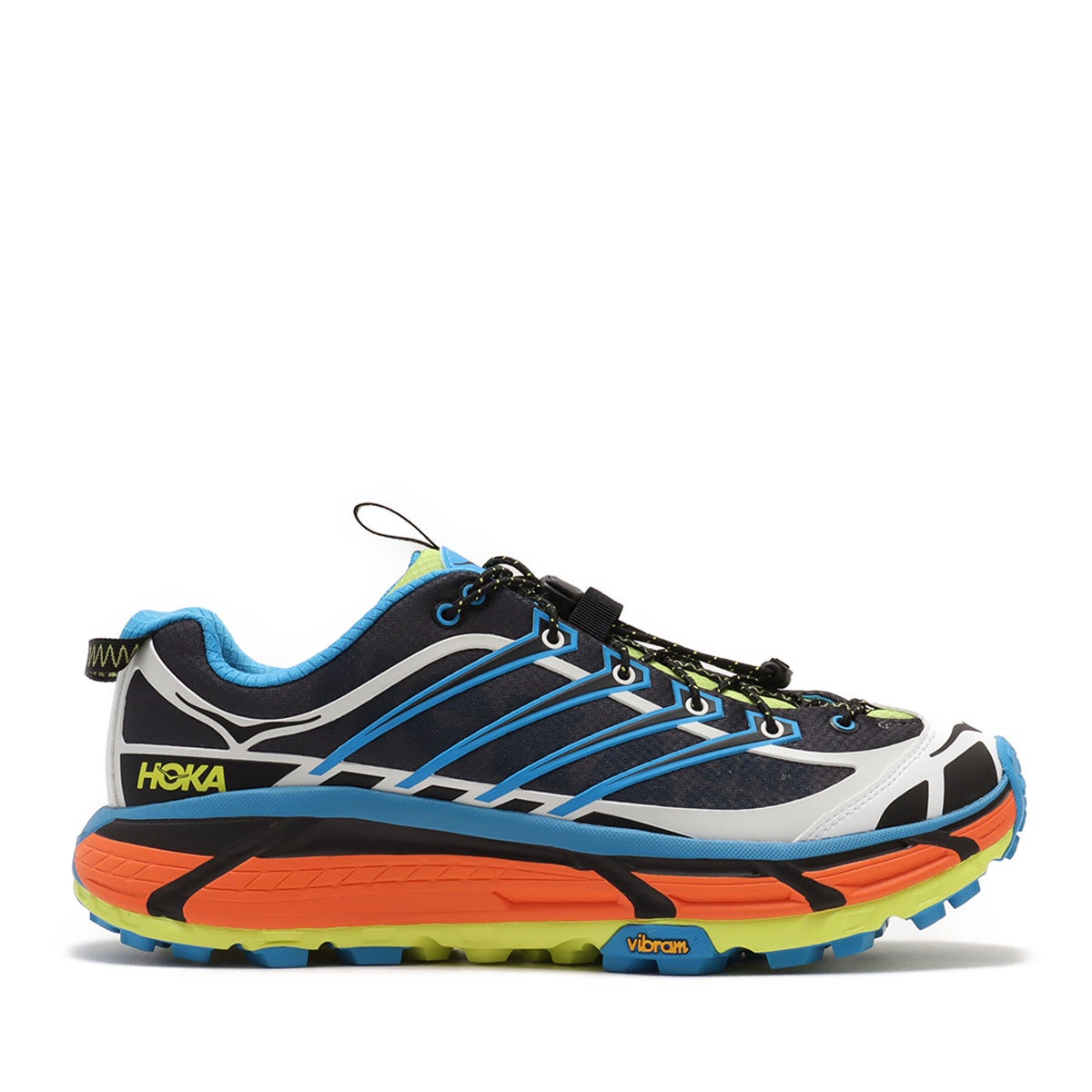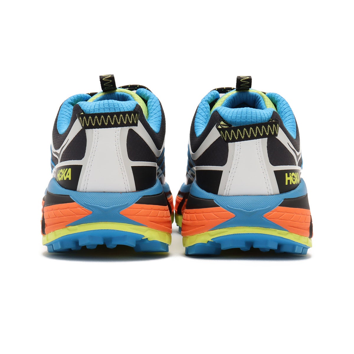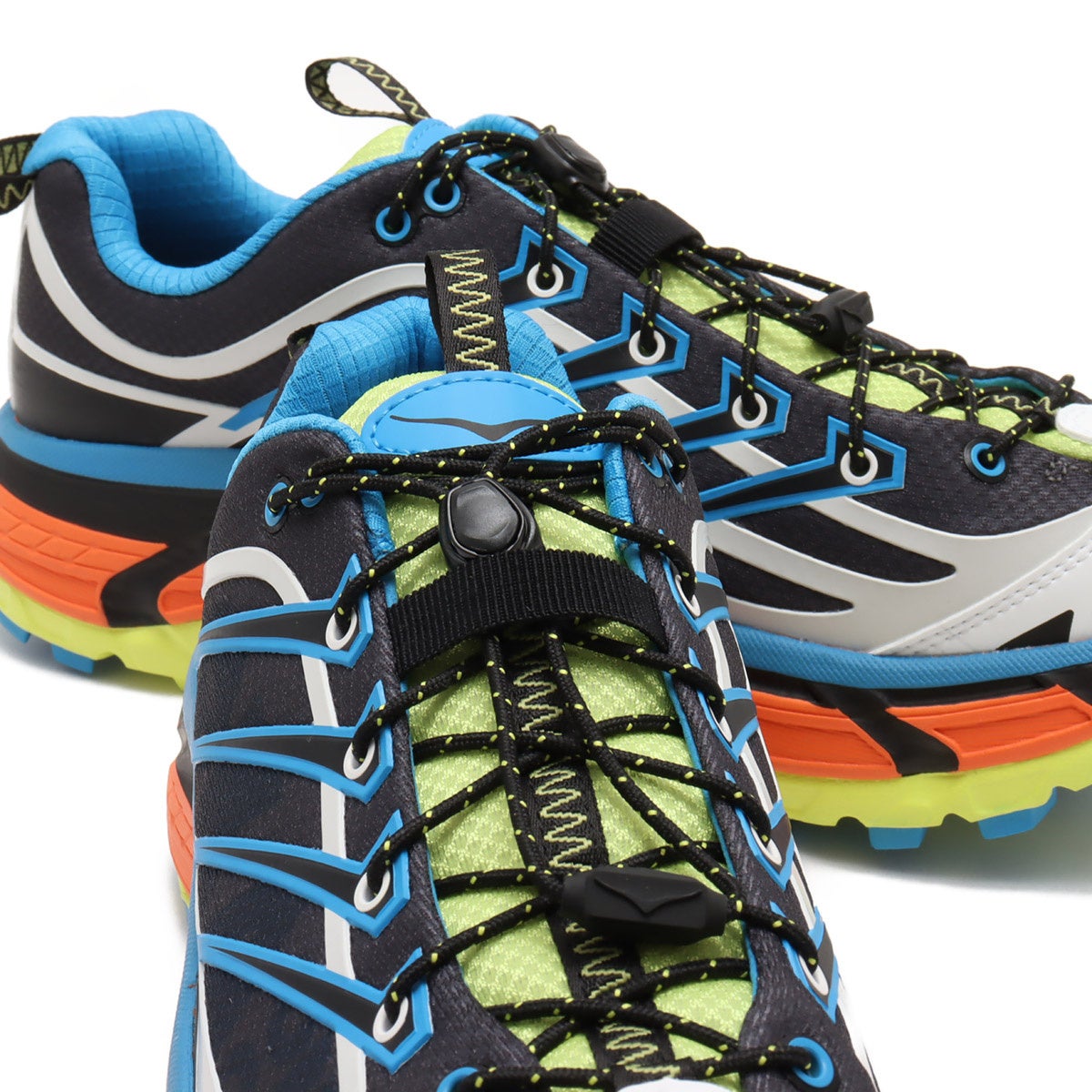 最後は、レトロな佇まいが新鮮に映るMAFATE THREE2がラインナップ。トレイルランニングタイプのMAFATE SPEED 2のシルエットを活かしながら大胆なロゴを配したデザインが特徴的なHOKAのアーカイブモデルMAFATE 3のアッパーを組み込んだマッシュアップなモデル。また、マチ付きで可動域が多いシュータンとフィット感を調節できるクイックレースシステムを搭載して履きやすさにも配慮し、アウトソールは耐久性に優れたVibramソールを採用。「HOKA」らしさを詰め込んだハイテク顔な一足です。