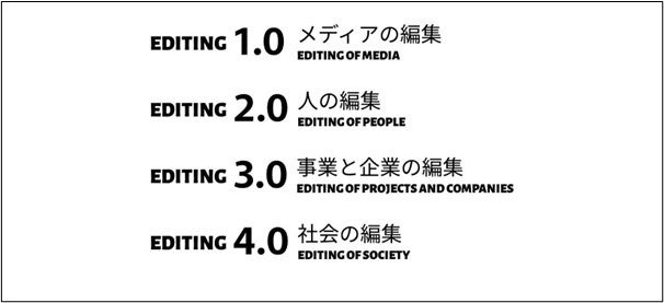 現在は、市場に鍛えられることで身に付けた「編集力」を用いて、既存のメディアにとどまらず、人や事業、企業、そして社会を編集する活動を行っている。