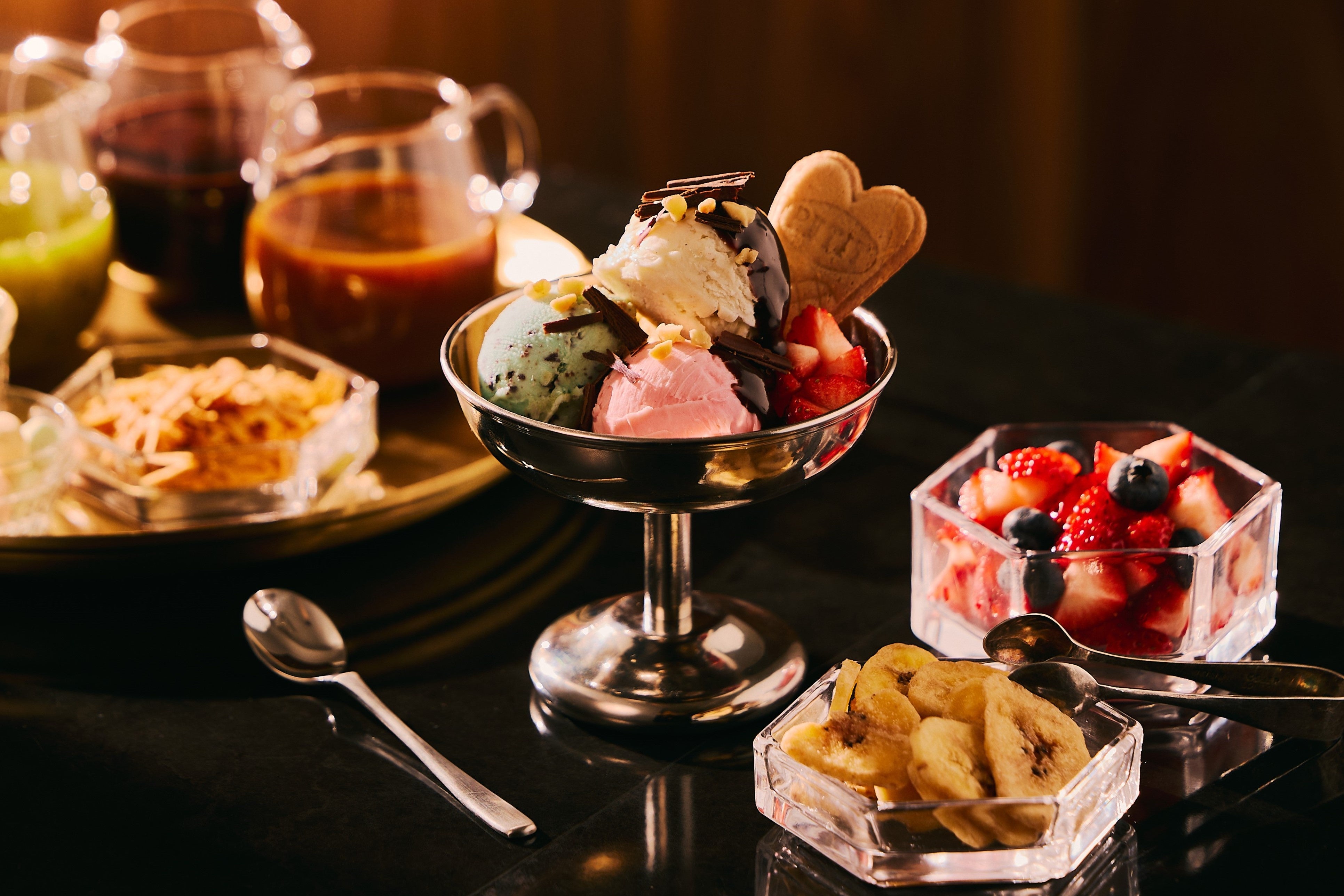 スタッフがスイーツやセイボリーをワゴンやプラッターにのせてお席までお持ちする、プレミアムなフルサービス形式のスイーツビュッフェを「La Jyho Terrace」にて初開催。シンボル「かんじんの京灯り」下でのウェルカムパーティーからスタートし、お席ではスイーツの食べ放題をお楽しみいただけます。