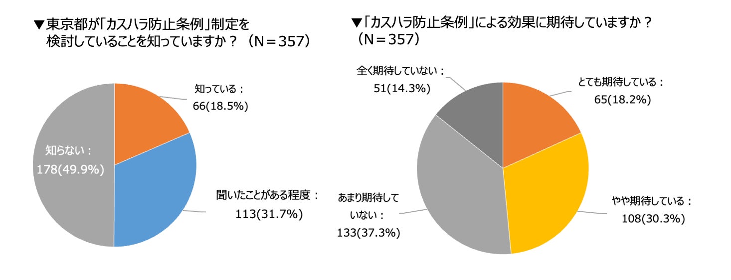 続いて、東京都が現在制定を進めており、2025年4月から施行予定の「カスハラ防止条例」について、認知度と期待度について聞きました。