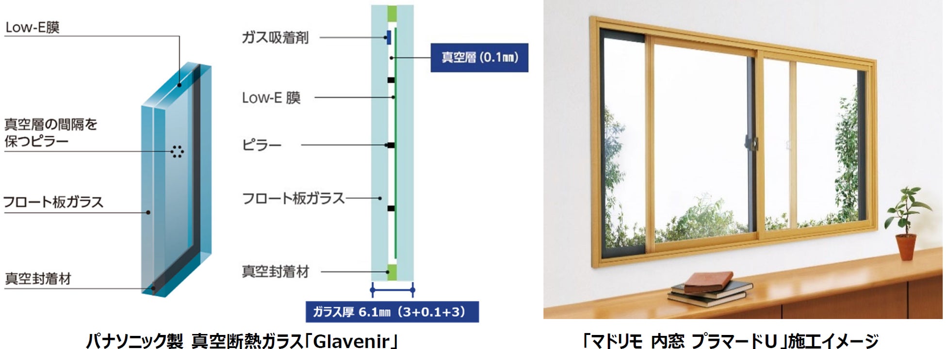 ■わずか6.1㎜厚の真空ガラスを組み込み、完成品内窓の熱貫流率は1.1W/(㎡・K)を実現
