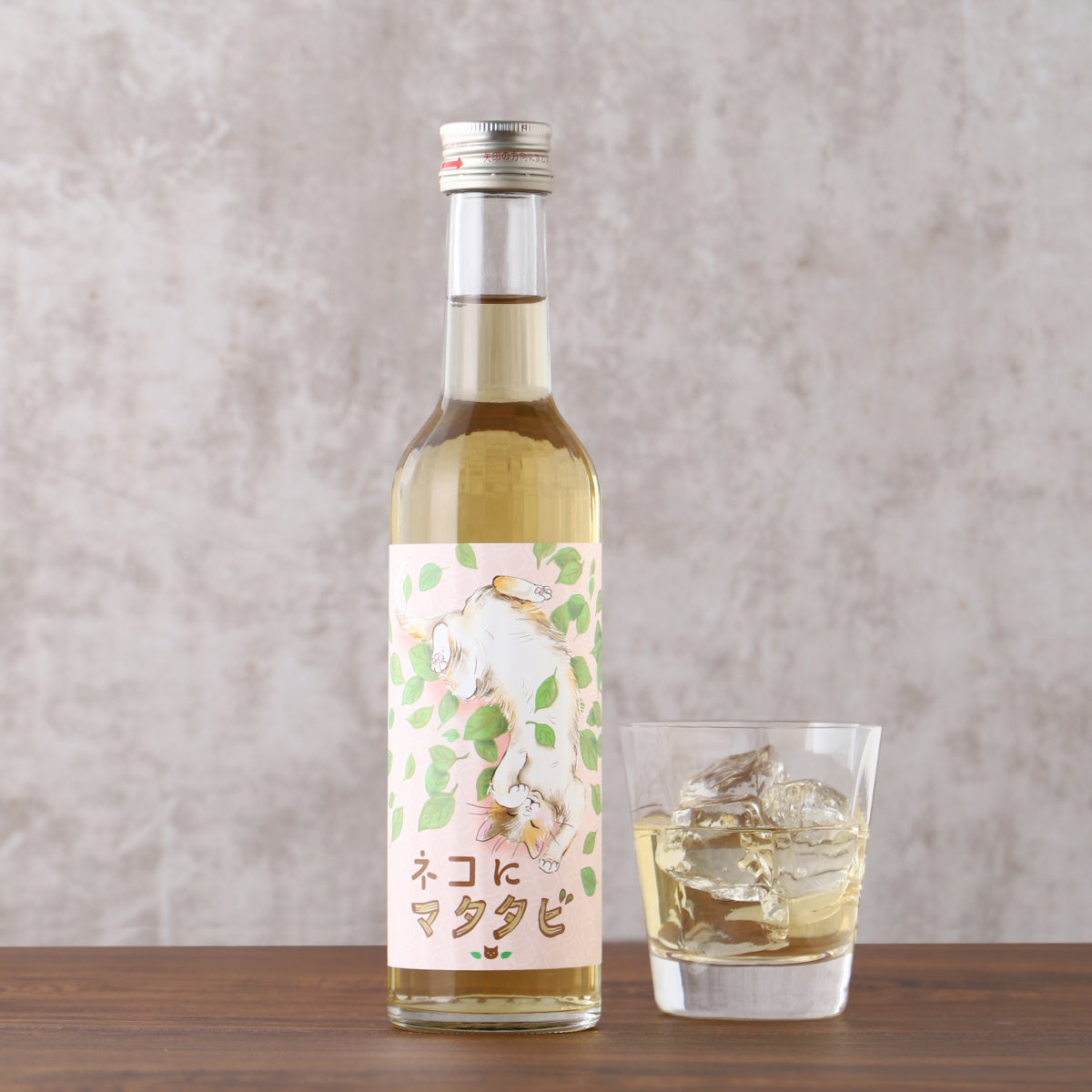 マタタビの実をじっくりと米焼酎に漬け込んで、マタタビの香りを引き出しました。はじめに訪れるのは、まるでオーク樽で熟成したのかと思ってしまうほどのウッディな甘い香り、口に含むとフローラルでバニラを思わせる香りがふんわりと鼻を抜けます。人間も思わずうっとりしてしまう、そんな香りに仕上げました。