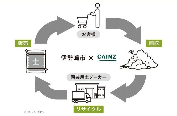 伊勢崎市資源循環課と連携し、伊勢崎店で家庭からの不用な園芸用土の無料回収を実施しています。回収した土は再生処理され、新たな園芸用土の原料の一部として生まれ変わります。市民が廃棄方法に困らず、資源循環に参加できる仕組みを構築し、不法投棄抑制や処理コスト削減といった伊勢崎市の課題解決にも寄与しています。