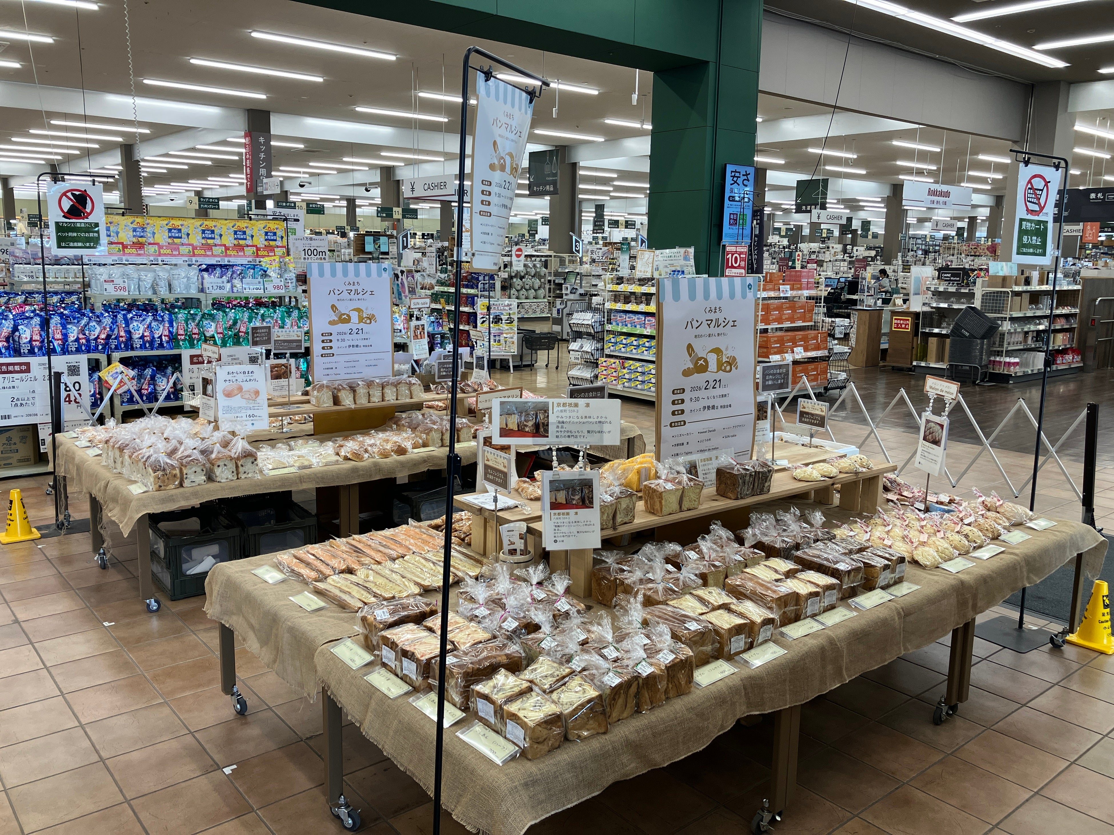 地元の人気ベーカリーや就労継続支援事業所と連携した「くみまちパンマルシェ」を継続開催。福祉事業所にとっては安定的なパンや焼き菓子等の販売機会につながっています。お客様にとっては地域の多様なパン類と出会う場となっており、伊勢崎市の魅力発信や地域産業振興につなげています。