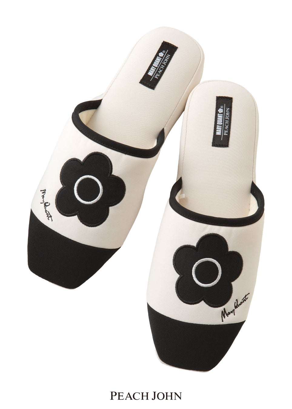 大きなデイジーが圧倒的インパクト!モノトーン配色が印象的なルームシューズ。約3cmのウェッジソールで、スタイルアップも叶えます。約22.5~24.5cmに対応するワンサイズ展開。