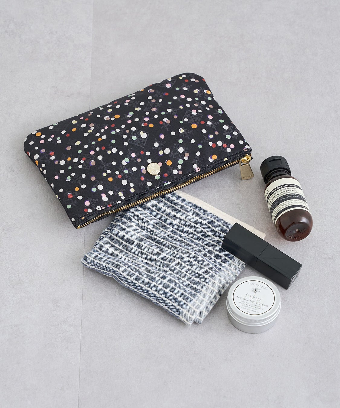 あられドットプリントフラットポーチ【russet×歌舞伎衣裳柄シリーズ】