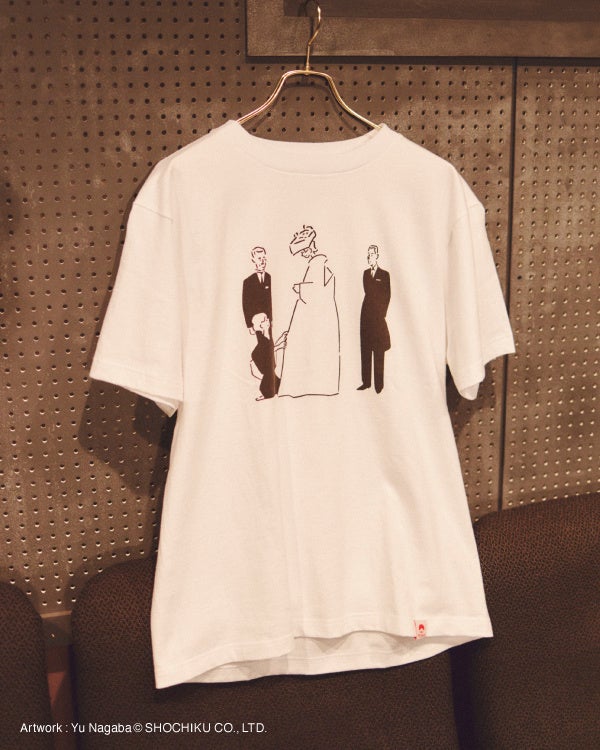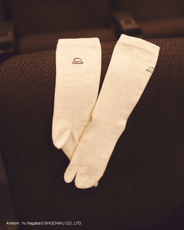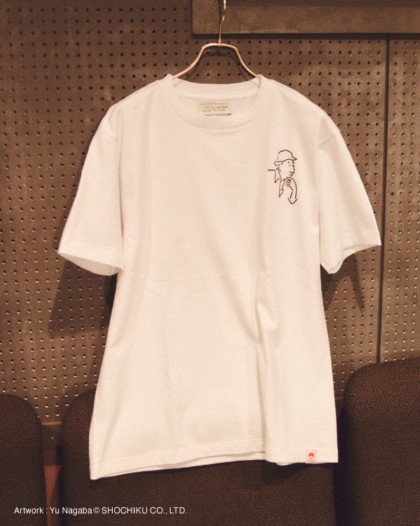 2023年7月14日(金)発売の第1弾では、長場雄のアートワークを前面に配したTシャツやバッグ、小津安二郎監督のアイコンともいえるピケ帽の刺繍をあしらった足袋ソックスを展開します。Tシャツの首元には本企画のために製作された特別なネーム、さらに各アイテムには小津安二郎監督の名言が入った下げ札が取り付けられます。