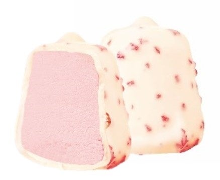 いちごピューレ入りの爽やかなストロベリーアイスをたっぷりのホワイトチョコレートでコーティングした、まろやかな味わい。フリーズドライのいちごがアクセントになります。