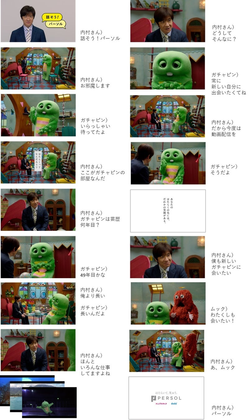 「ガチャピン篇」:https://youtu.be/NW3NGi6xCgU