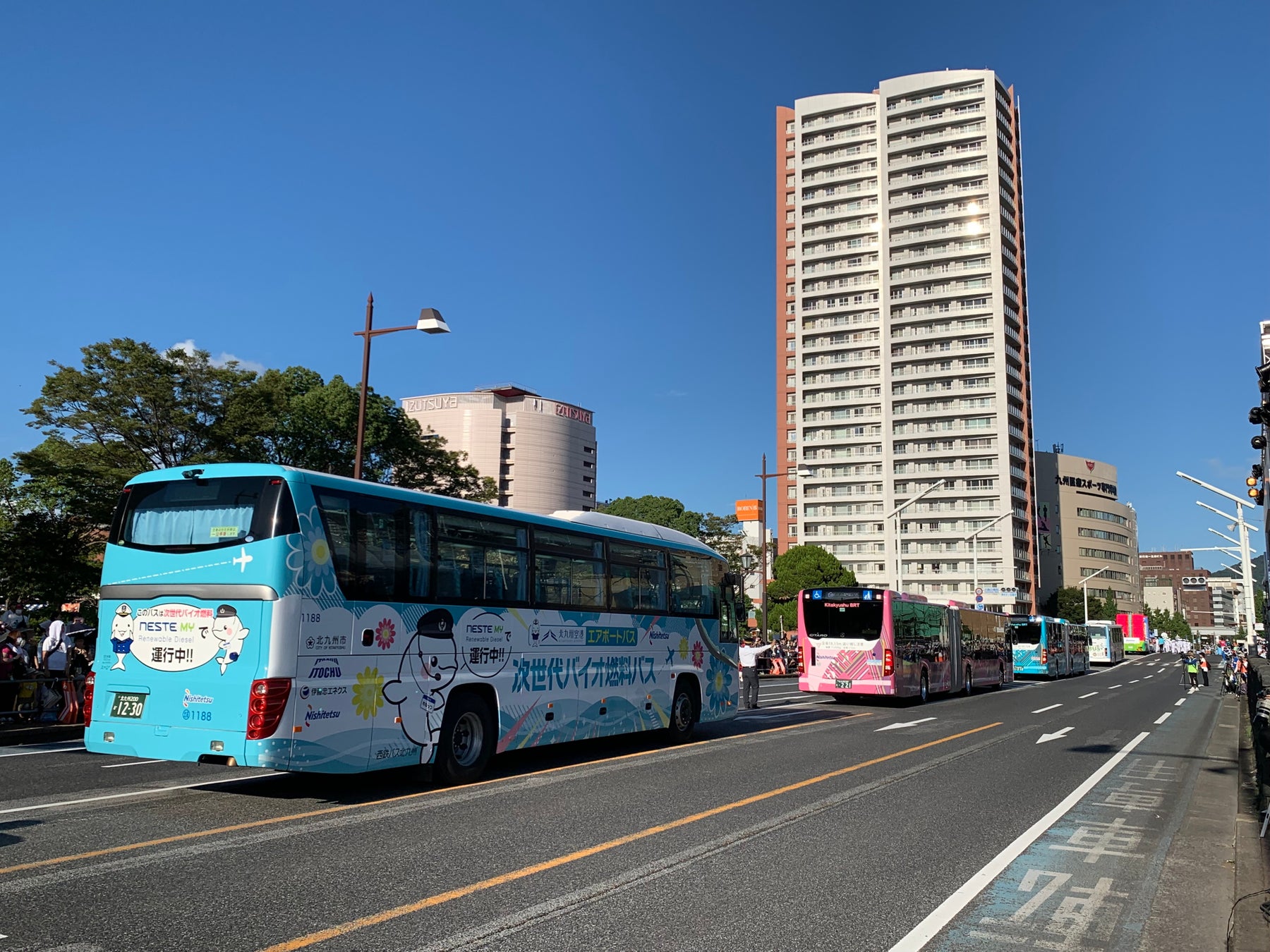 運行当日の8月4日(日)は、北九州のまちを運行するほか、チャチャタウン小倉での展示や、同日に行われる「わっしょいパレード2024」に連節バスやレトロフィット電気バスと一緒に参加します。