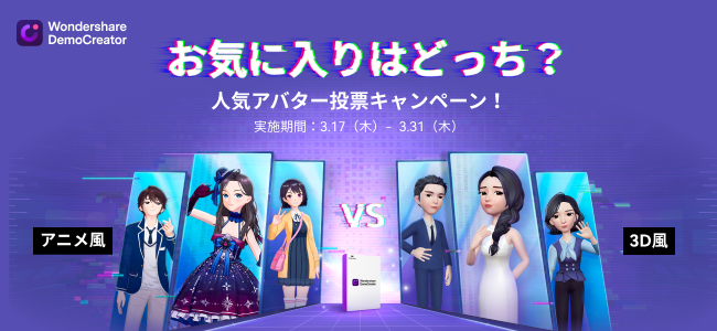 【豪華賞品あり】画面録画&動画編集ソフトWondershare DemoCreatorが人気アバター投票キャンペーンを実施