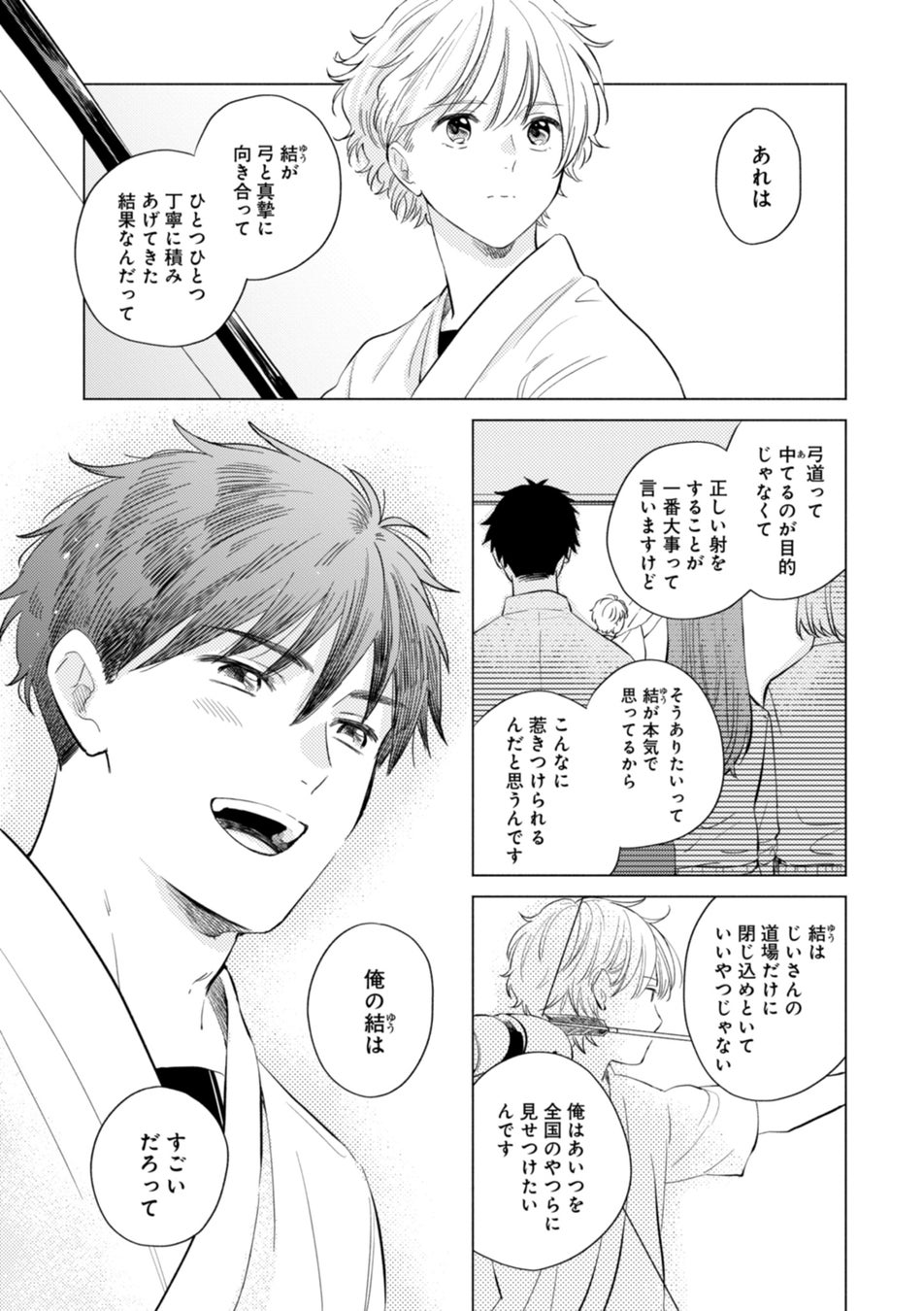祖父の道場で弓道を教わっていた結は、偶然道場に立ち寄った同い年の創と出会う。