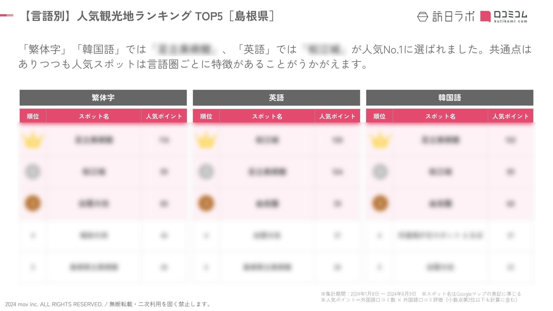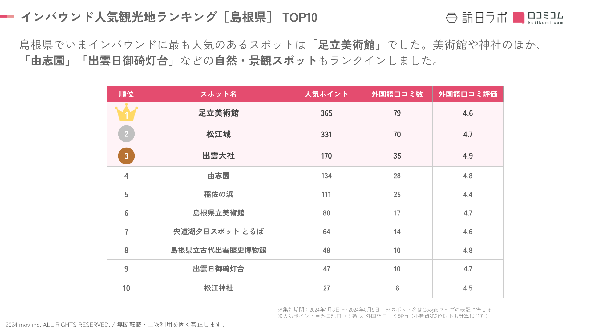 <インバウンド人気観光スポットランキング[島根県編] TOP10>