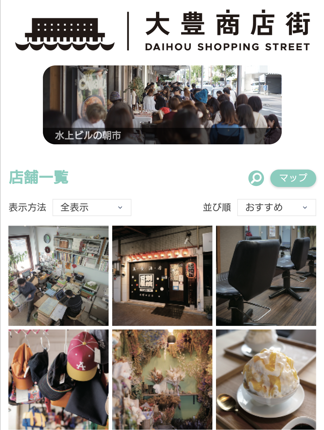 実証実験では、デジタルマップを活用して地域の魅力を発信しているジオ・マークが開発したウェブアプリ「QRan(クラン)」を活用。クラン上に大豊商店街の各店舗の専用データベースを作成して、店舗概要や営業時間、定休日、SNS情報などを掲載しています。11月から来年1月末頃まで、集客力の向上効果を検証します。クランが目指すのは、高齢化や人手不足などにより、個々の店舗の情報を統一して発信することが難しい商店街の情報をまとめ統一されたコンセプトで発信することで、商店街全体の集客力アップを目指しています。