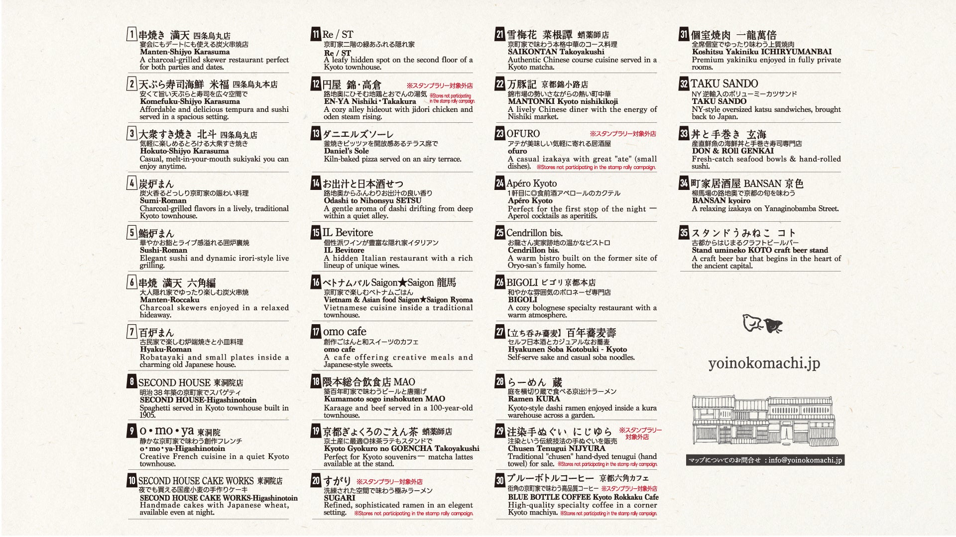 参加店舗:京町家リノベーション店舗を中心とする約30店舗