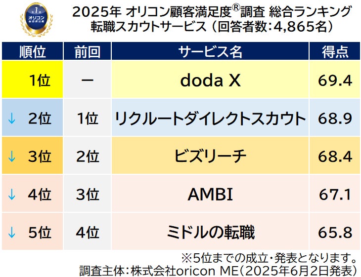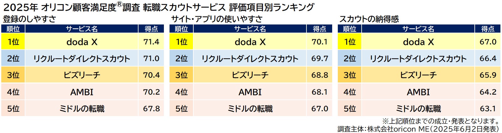 【doda X】が初の総合1位に 「スカウトの納得感」「登録のしやすさ」など全項目で1位に