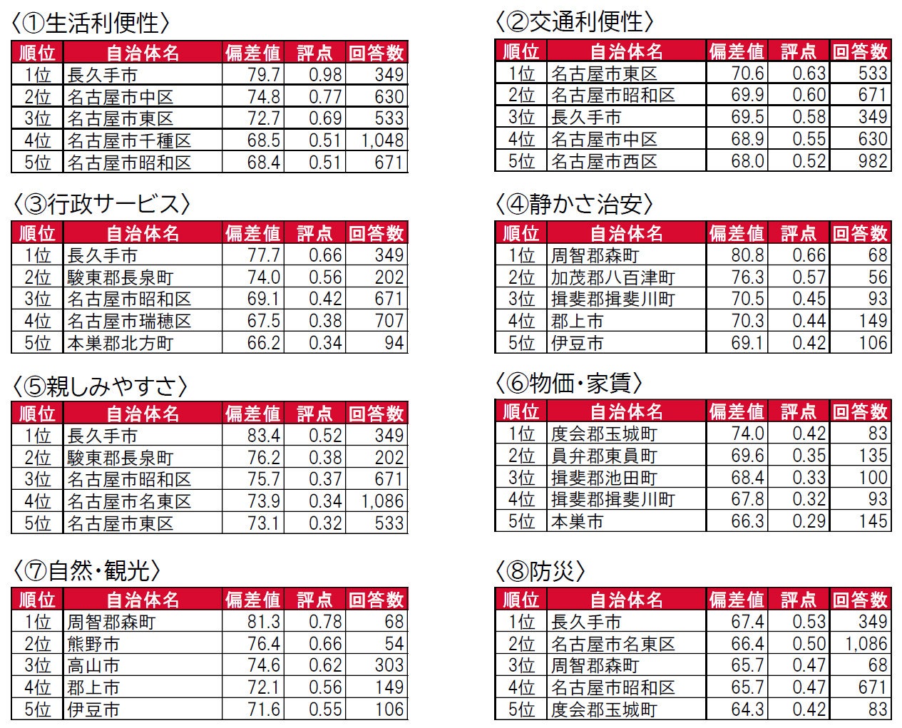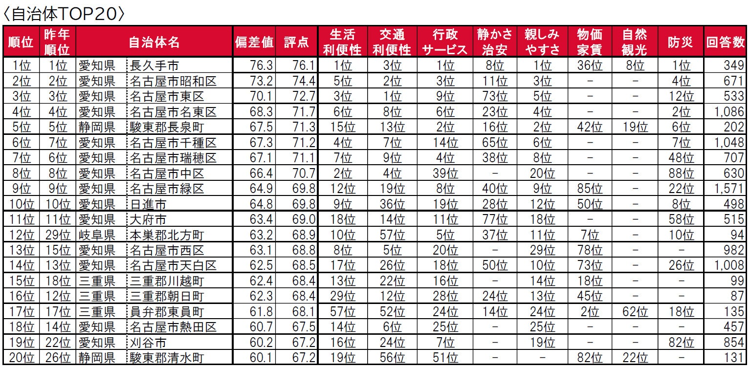 - 「いい部屋ネット 街の住みここちランキング2022<東海版>」 主なポイント