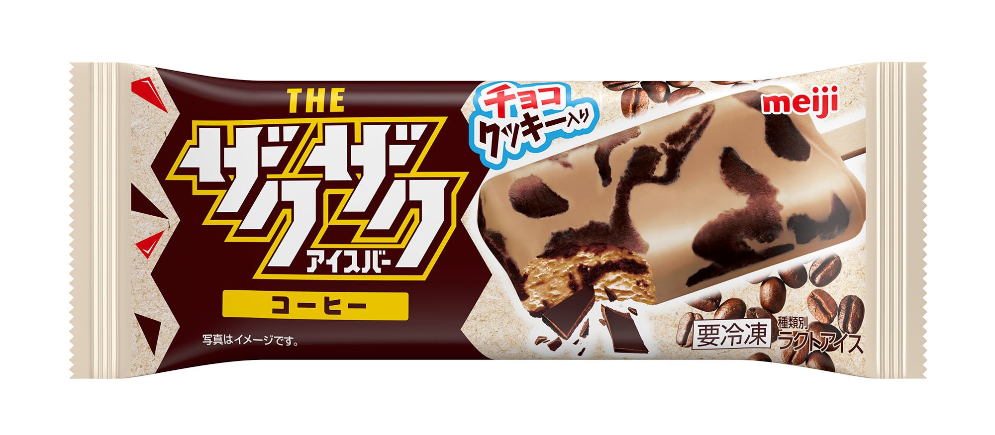 【内容】ザクザク食感のクッキー入りチョコを、マーブル状に混ぜ込んだアイスバーです。食べ応えのあるザクザク食感で、コーヒーアイスとチョコの味わいが楽しめる商品です。