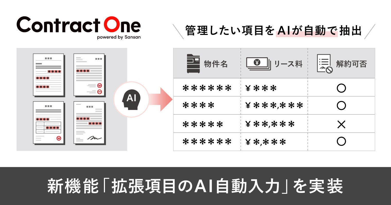 働き方を変えるDXサービスを提供するSansan株式会社は、契約データベース「Contract One(コントラクトワン)」において、新機能「拡張項目のAI自動入力」を2024年12月より実装することを発表します。