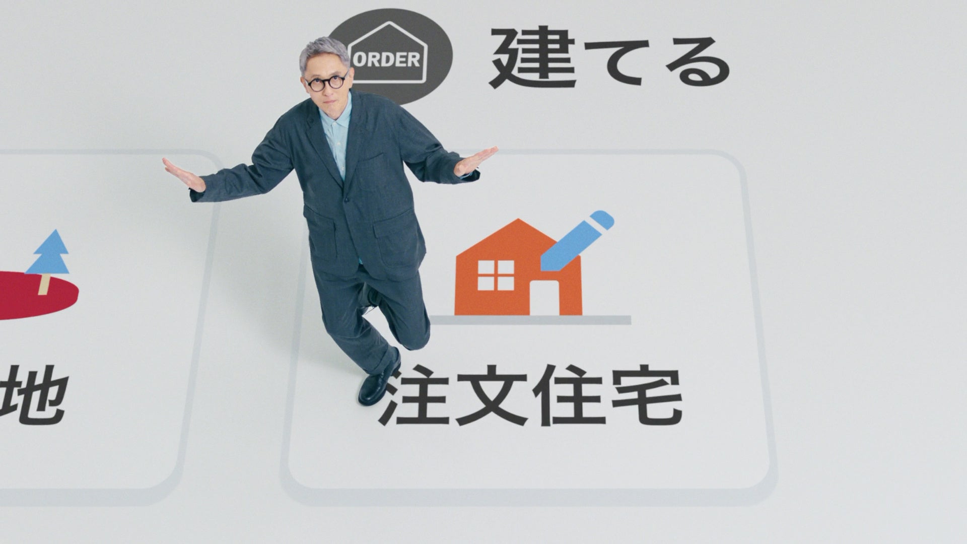 唯一苦戦したのは「注文住宅」のアイコンに飛び乗るシーン。片足で着地しながら上を向くという難しい動きに、着地のバランスが崩れることもありましたが、「もう一回」と自ら再撮影を申し出て、見事OKに。プロフェッショナルな姿勢が光る現場でした。
