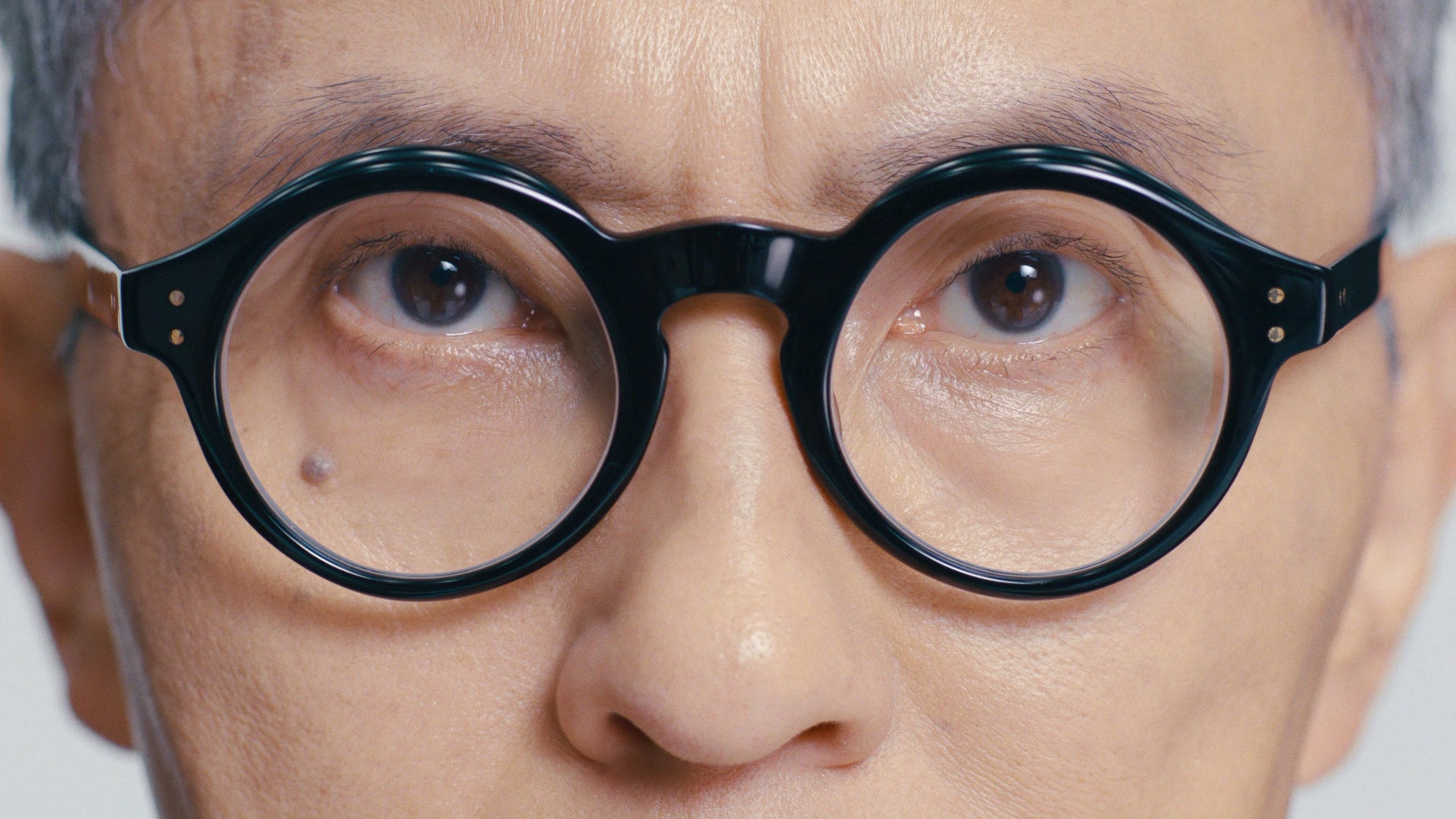 今回は真っ白なセットを舞台にした撮影でした。水色のシャツにグレーのセットアップという爽やかな衣装で登場した松重豊さん。落ち着いた様子で現場入りすると、監督の説明に真剣な眼差しで耳を傾けていました。