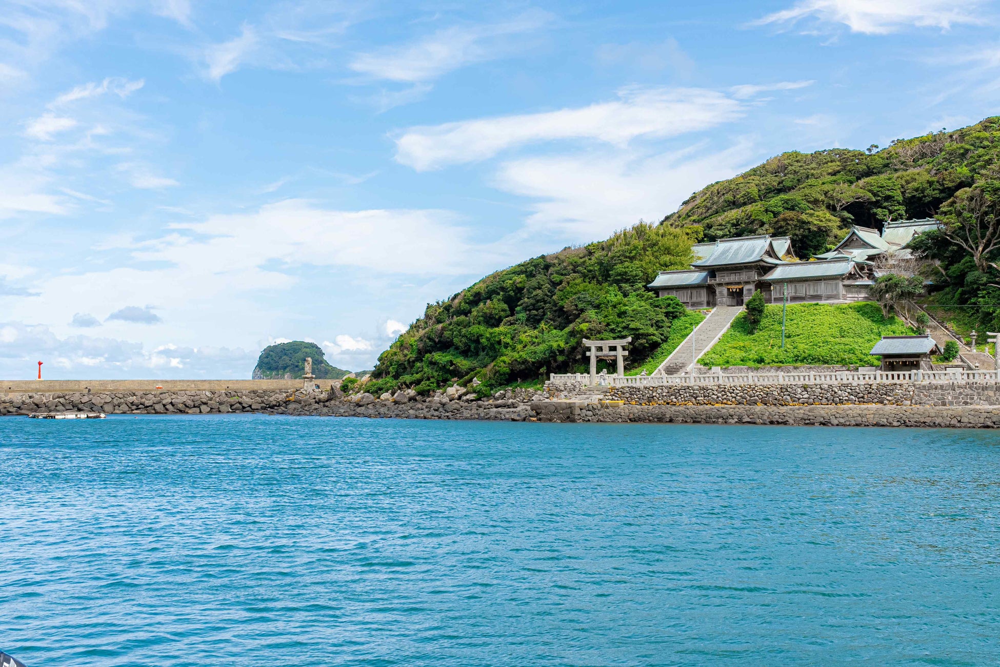 約1800年の歴史を有する田島神社は、玄界灘随一の古社として知られています。御祭神は豊玉姫命をはじめとする海の神々で、航海安全、漁業繁栄、安産・子宝、縁結びなど多岐にわたるご利益が伝えられています。境内からは玄界灘を望むことができ、地域の人々を守護する社として、今も信仰を集めています。